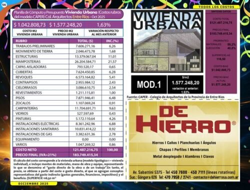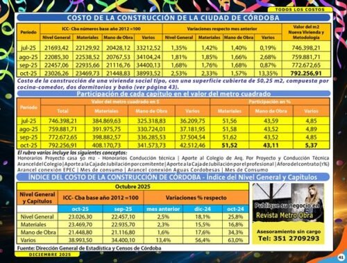 La edición Digital de Diciembre 2025 trae los costos de construcción, precios de mano de obra y materiales.