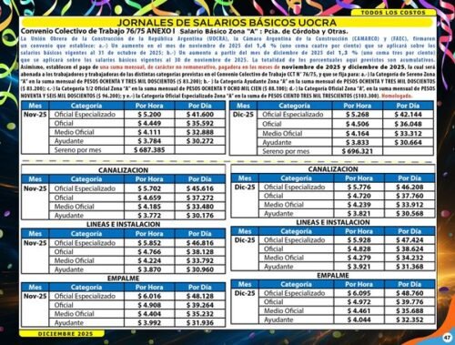 COSTOS DE MANO DE OBRA Y COSTOS DE CONSTRUCCION AL 30/11/25