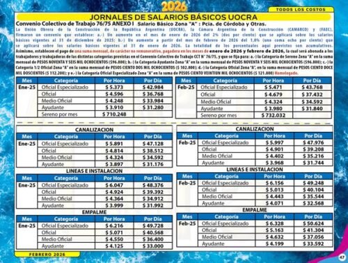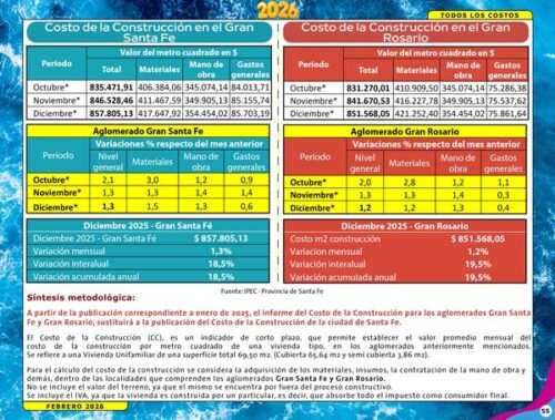 COSTOS DE MANO DE OBRA Y COSTOS DE CONSTRUCCION AL 31/01/26