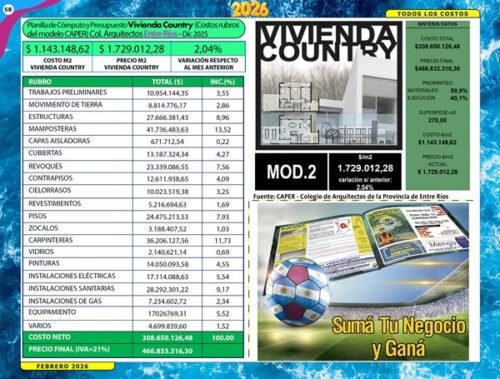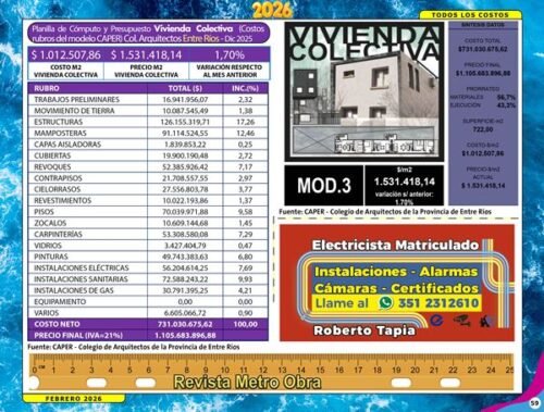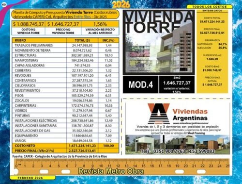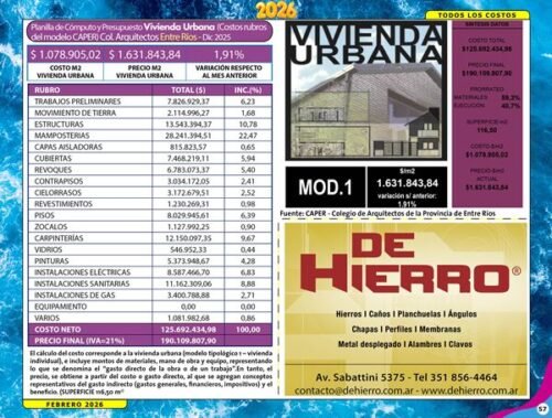 La edición Digital de Febrero 2026 trae los costos de construcción, precios de mano de obra y materiales.