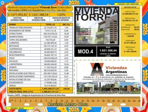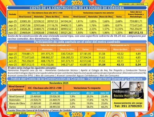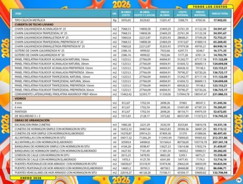 La edición Digital de Enero 2026 trae los costos de construcción, precios de mano de obra y materiales.