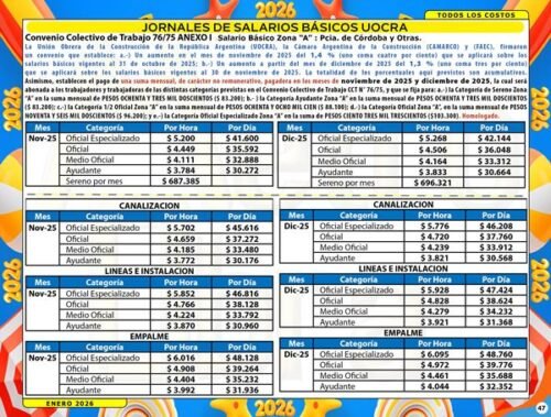 COSTOS DE MANO DE OBRA Y COSTOS DE CONSTRUCCION AL 31/12/25