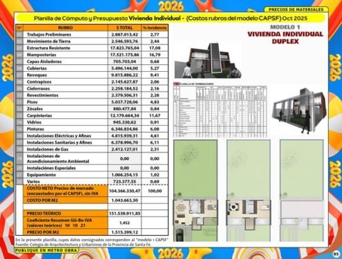 “Costo por m2 de Vivienda Urbana Duplex en Córdoba”