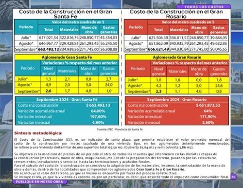 COSTOS DE MANO DE OBRA Y COSTOS DE CONSTRUCCION AL 31/10/24