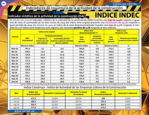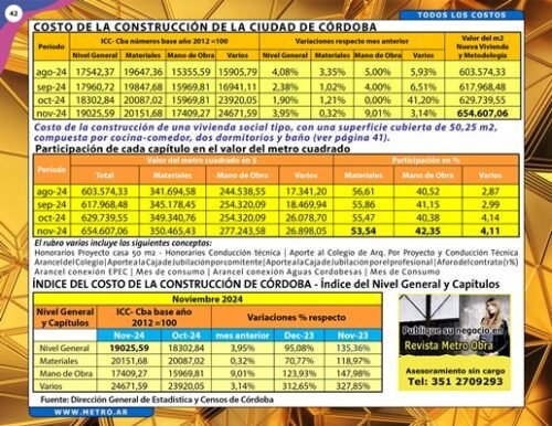 COSTOS DE MANO DE OBRA Y COSTOS DE CONSTRUCCION AL 31/12/24
