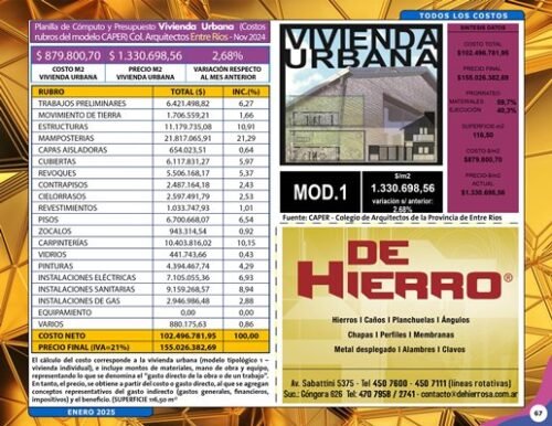 La edición Digital de Enero 2025 trae los costos de construcción, precios de mano de obra y materiales.