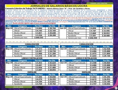 COSTOS DE MANO DE OBRA Y COSTOS DE CONSTRUCCION AL 30/06/25
