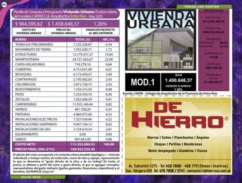La edición Digital de Julio 2025 trae los costos de construcción, precios de mano de obra y materiales.