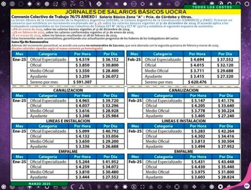 COSTOS DE MANO DE OBRA Y COSTOS DE CONSTRUCCION AL 31/01/25