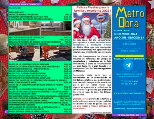 La edición Digital de Diciembre 2024 trae los costos de construcción, precios de mano de obra y materiales.