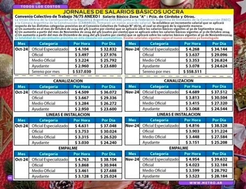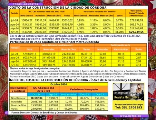 COSTOS DE MANO DE OBRA Y COSTOS DE CONSTRUCCION AL 30/11/24