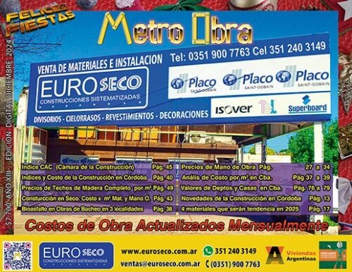Valores actualizados de construcción en seco, índice de Córdoba, índice de Santa Fé, índice de la ciudad de Buenos Aires, precio de m2, índice CAC (Capital Federal), Indice Indec, Indice Construya, Indices de Obras Viales, Sueldos UOCRA, Cálculo de incidencia de Cargas sociales sobre la mano de obra de la construcción, Cantidad de materiales por m3, Guía de Negocios y notas de interés general.